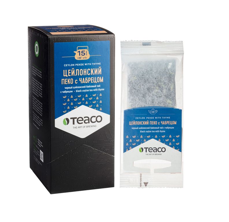 Черный листовой цейлонский чай с добавлением отборного чабреца. Расфасован в удобные фильтр-пакеты для заваривания в чайнике. Готовый напиток является отличным средством профилактики благодаря антисептическим и противовоспалительным свойствам чабреца. Готовый напиток бодрит, ускоряет обмен веществ, избавляет от отеков. Вкус - значительная терпкость, умеренная кислотность, послевкусие – продолжительное, с мягкой горчинкой и преобладанием растительных оттенков. Аромат - ноты пряных трав с древесными оттенками. Цвет настоя - коричнево-желтый, интенсивный, прозрачный.