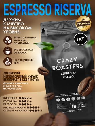 ESPRESSO RISERVA - Смесь 80/20 арабики разных сортов и робусты. Обжарка средняя, ближе к темной. Состав: смесь арабики и робусты из Бразилии, Колумбии и Никарагуа. Скрин (размер зерна): 17/18. Бленд представляет собой классический эспрессо из разных сортов премиальной арабики и робусты. Вкус плотный , шоколадный , чуть горький, с самой минимальной кислинкой ! Во вкусе сладкий с нотками фундука, грецких орехов, тростникового сахара и сухофруктов!