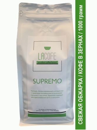 Зерновой кофе LACOFE SUPREMO представляет собой купаж премиальных сортов арабики и робусты из Вьетнама, Бразилии, Колумбии и Индии. Основой купажа являются два сорта арабики: Вьетнам Далат и Колумбия Супремо. Вкус кофе получается сбалансированным, терпким и густым, и одновременно достаточно мягким и гармоничным, без потери полноты и плотности, с приятным послевкусием и сочетанием горчинки и кислинки. Это сбалансированный кофе с хорошим какао-профилем и теплыми шоколадными оттенками. У этого кофе есть совсем небольшая, еле заметная кислинка, которая добавляет ему легкой свежести. Идеально подходит для любителей баланса кислинки и горчинки, а также насыщенного вкуса без потери полноты и плотности. Отличный купаж для приготовления классического эспрессо, латте и капучино.